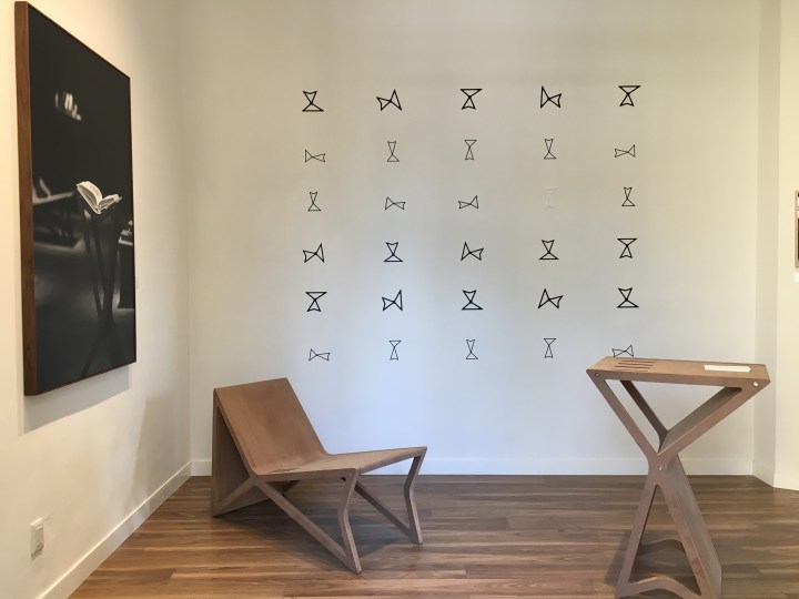 Lo que estamos viendo ahora es el mueble de Eric Martin de Delvendahl Martin Architects, aunque para ser sincero me hubiese gustado ver más sobre sus notas. Pero nos encontramos en que no había un momento perfecto para abrir al público, sino lo abrimos ahora vamos a pasar al siguiente año. Yo quería que fuera en el marco de la FIL, la semana más importante, y creo que esa fecha se puede volver a repetir el siguiente año en el mismo día.